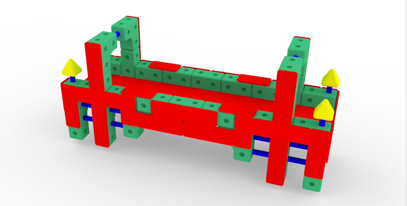Designing a product for children is a unique challenge for multiple reasons, the first of which is that it has to be easy to understand. The second is that the toy has to be engaging when played with. Building block toys are a great way to let your child be creative in a safe way that lets them learn about things like stability and planning. This toy set was designed to be sold in premade amounts that could be used to create specific types of buildings or other structures, but you could also ignore the instructions and build whatever you wanted.
