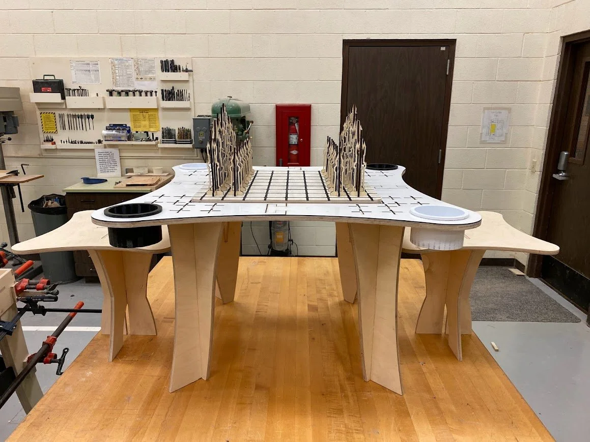The only thing that limited this project when I was making it was that I could only use one sheet of plywood to make it all. How I used that one sheet was entirely up to me, and how much I could safely get out of it when cutting the pieces out with a large-scale CNC. Since this was a chess table, I also made a matching chess set to go with it, which you can learn more about by clicking on the images below.