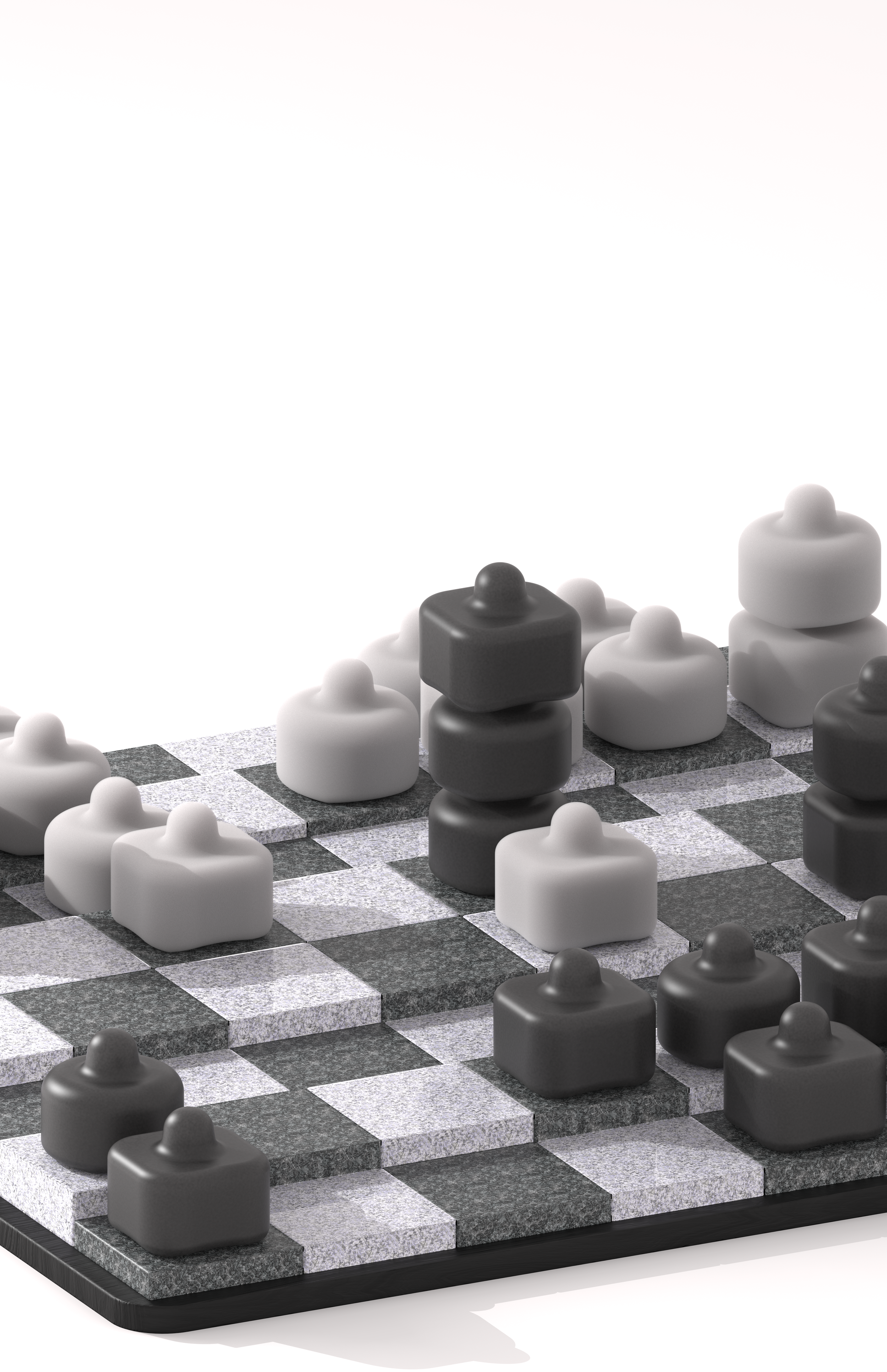 One of my favorite projects in college was this multi-use gameboard set I designed. I was tasked with creating a gameboard set that would work with multiple games, so I chose Chess, Checkers, and Gounki, a game similar to Checkers except it involves stacking your pieces to win. The gimmick of this model set is that it’s all inclusive, and the board itself has adjustable pieces that give the board a more vertical sense. For example, you can elevate more important pieces or locations on the board. It makes the design feel a little bit more like a battlefield, giving it a sense of drama instead of just a regular, uncomplicated gameboard.