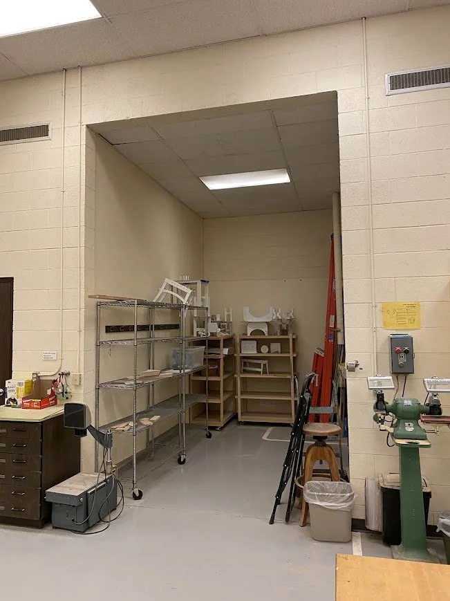 One of the more interesting projects I was assigned in college was finding a way to display some student short films at a design show. I had no clue how to do this or what I was even going to do; I had never worked with projection or large screens in any way. The first thing I did was decide to utilize this little outcropping in our showroom, which was being used for storage.